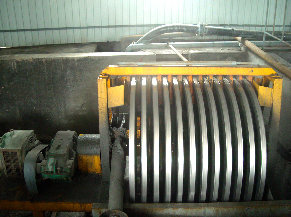 YCW系列無(wú)水卸料回收機(jī)是我公司根據(jù)國(guó)外先進(jìn)經(jīng)驗(yàn)研制開發(fā)的一種新型產(chǎn)品。該磁系采用一組由外裸磁塊鑲嵌而成的磁環(huán),按照一定間隙排列而成。該磁系直接作用磁性物料,磁場(chǎng)強(qiáng)度高,作用梯度大,回收率可高達(dá)85%-95%,特別是采用V形刮板,借助磁性物料自身重量,實(shí)現(xiàn)了無(wú)水或少水一次卸料。